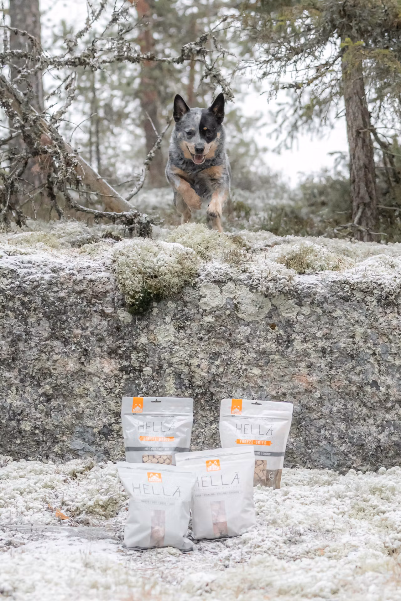 Hellä ® Kylling og Hellä ® Storfe selges i konsumentforpakning på 1 kilo per pose. Produktene er formet på samme måte som Vaisto® fullfôr-boller som er enkelt å porsjonere.