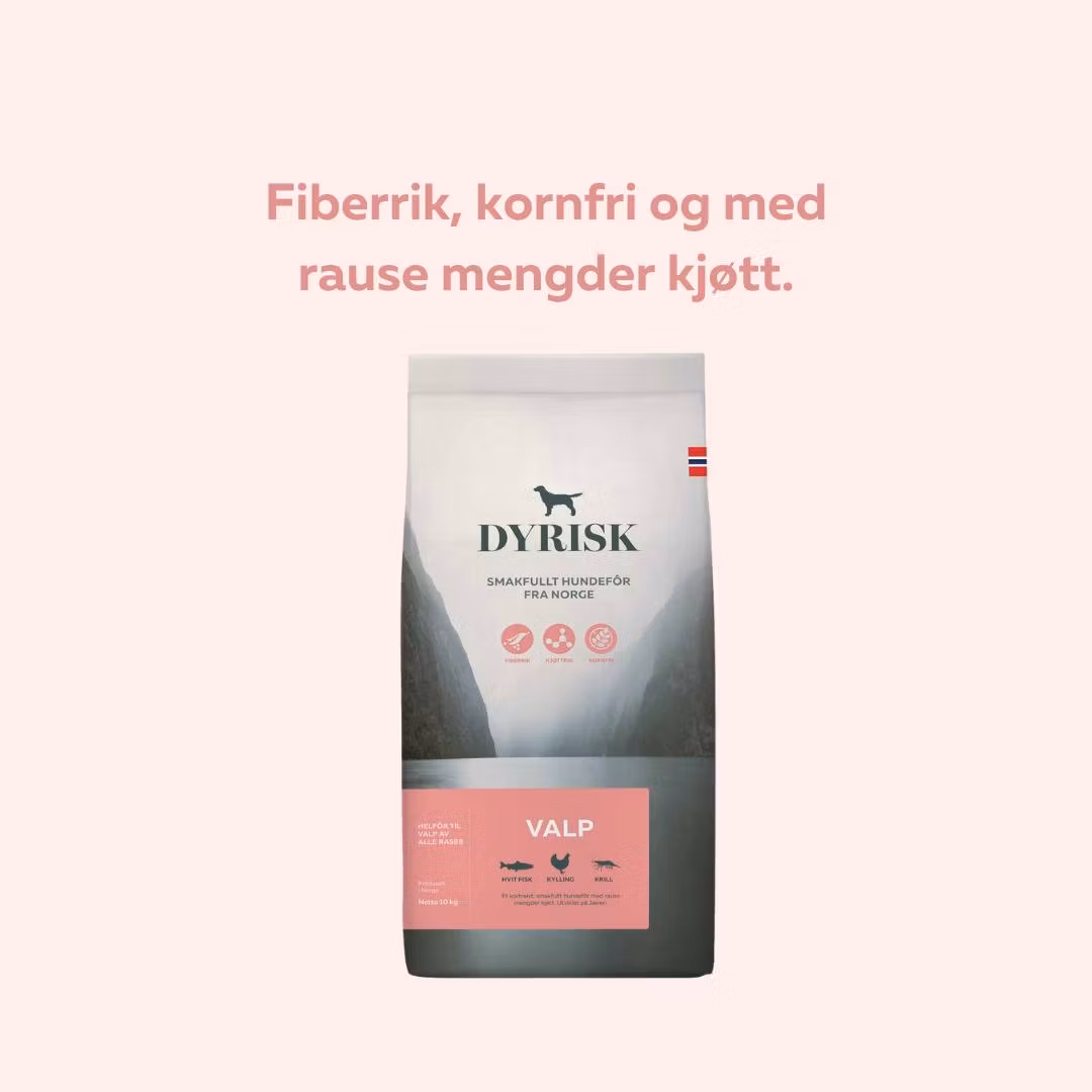 hunden din et kortreist og smakfullt hundefôr. Dyrisk er utviklet på Jæren, midt i hele Norges matfat.