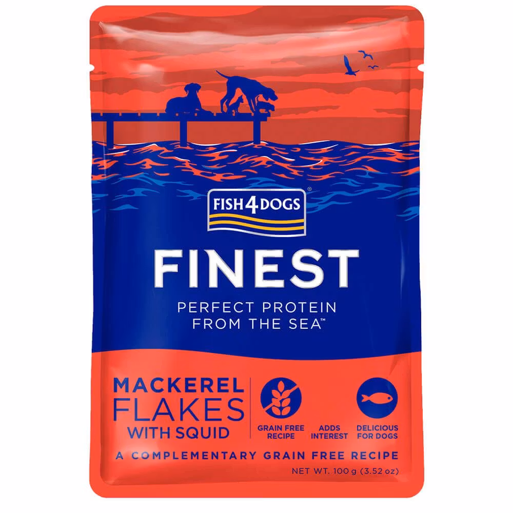Våtfor fra Fish4Dogs med makrell og akker.Våtgodbit som er appetittvekkende og kan brukes alene som godbit eller sammen med tørrfôr.Herlig smakskombinasjon av m
