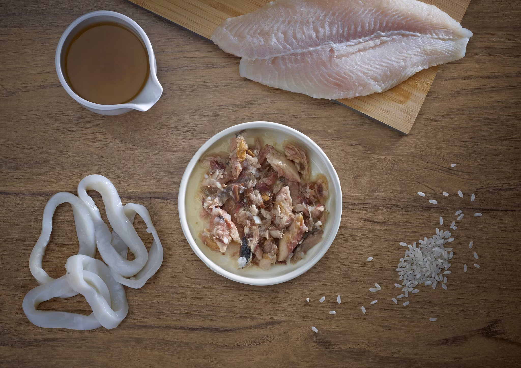 Sammensetning: Makrell 65%, Fiskebuljong 26%, Akkar 5%, Ris 4%