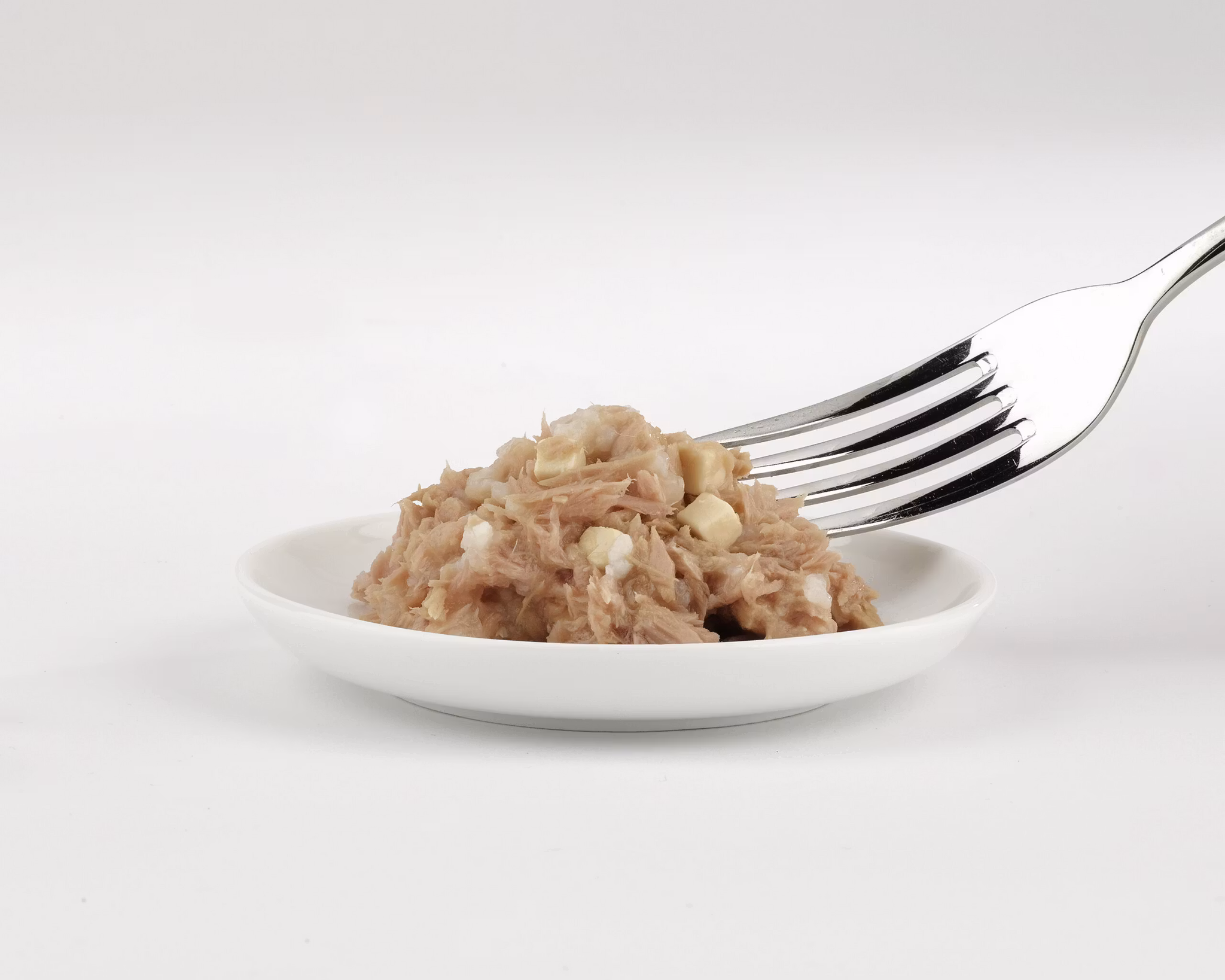 Sammensetning: Tunfisk 65%, fiskebuljong 27%, Ost 4%, Ris 4%.