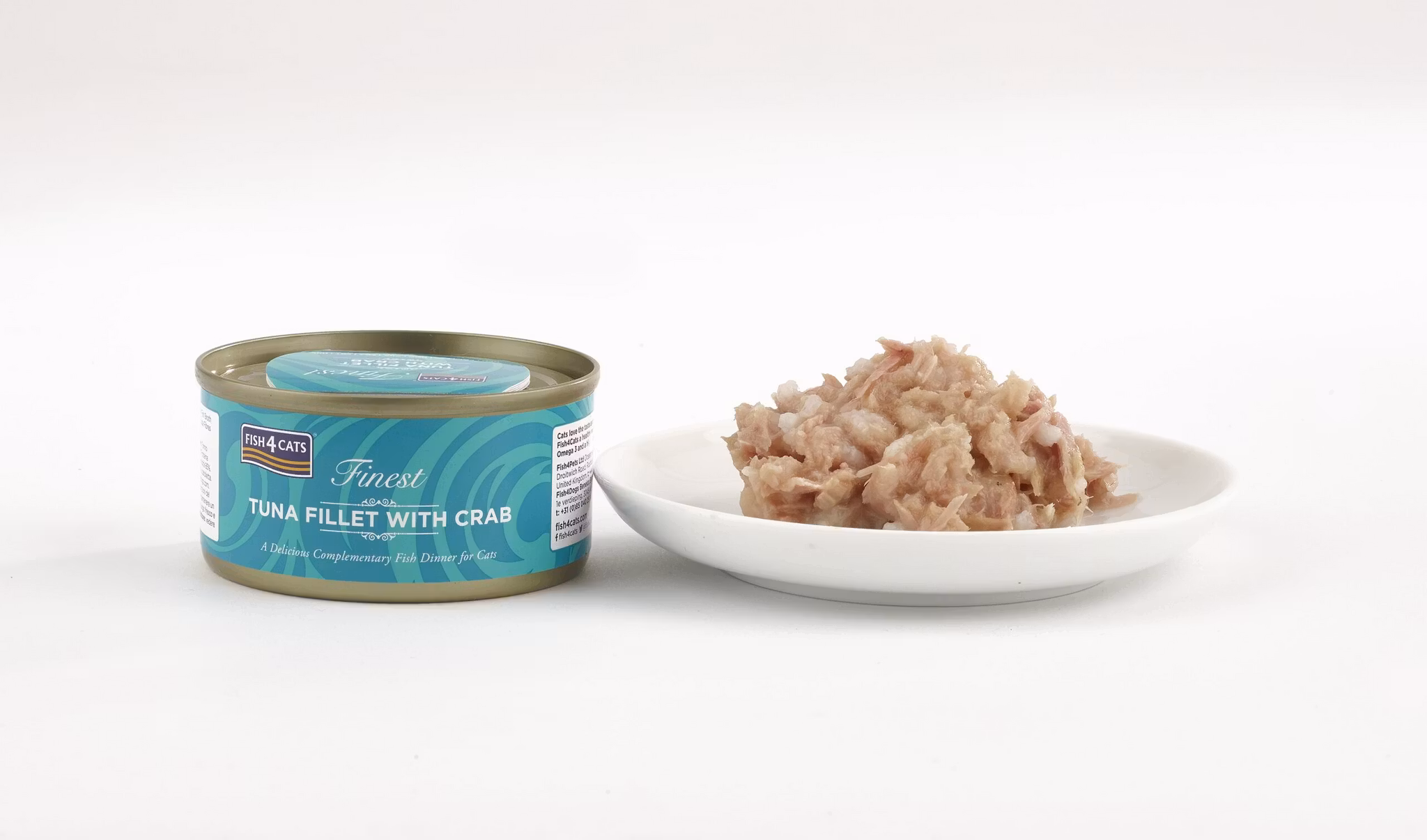 Sammensetning: Tunfisk 54%, fiskebuljong 38%, Krabbe 4%, Ris 4%.