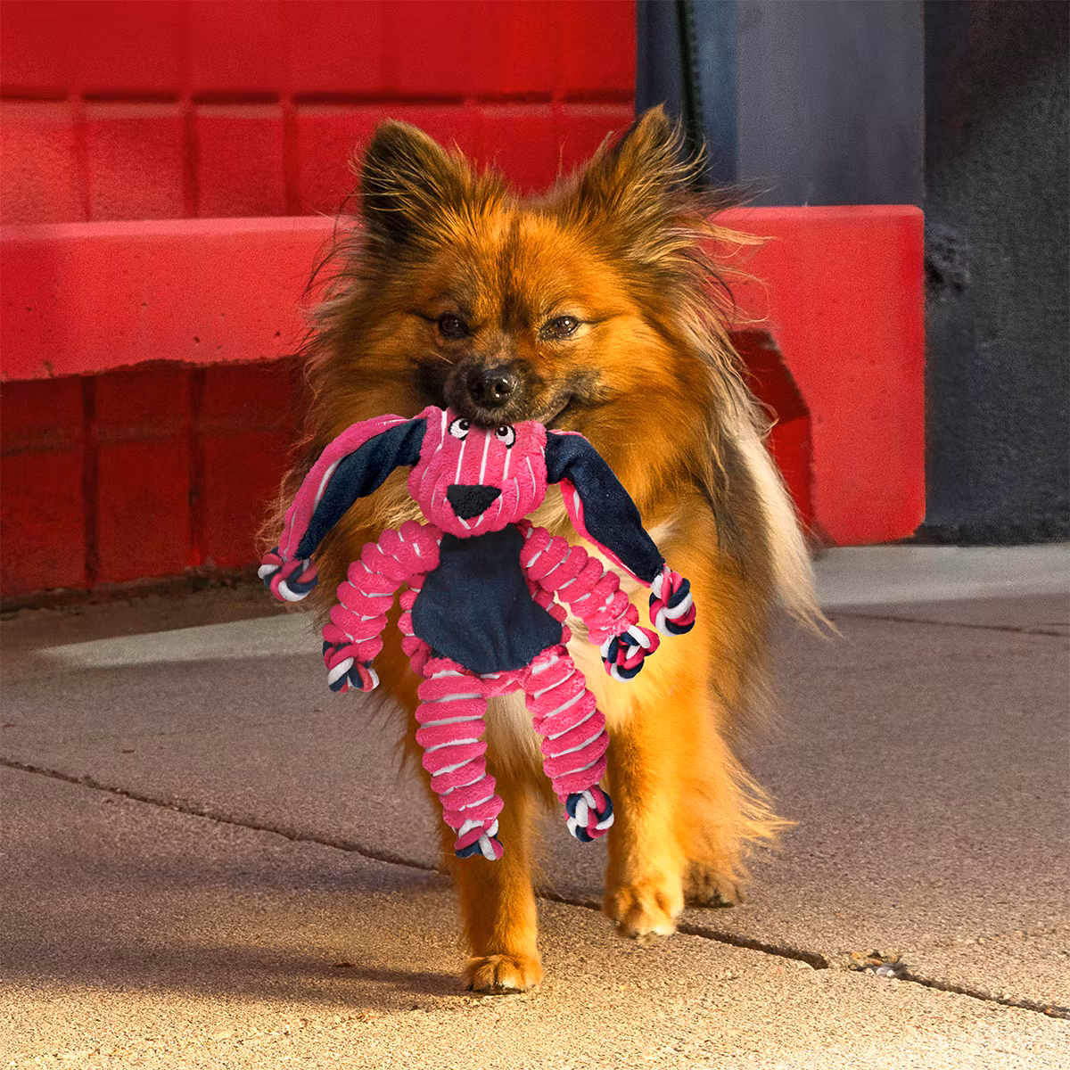 KONG Floppy Knots er den nyeste ankomsten i Knots-stammen med et muntert, floppy design som gir god moro med å slåss. Den realistiske følelsen av det indre knyttede tauet tilfredsstiller naturlige instinkter, mens de varierte teksturene og pipelydene gjør dem klare for lek. Med minimal fylling for mindre søl, gjør deg klar for underholdende spill og glis.