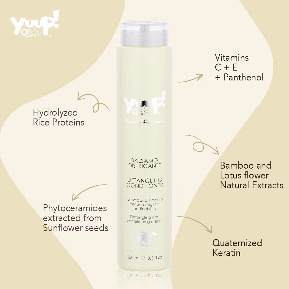 Balsam godt egnet for alle typer pels og spesielt for de mest skadete og sprø pelsene. Anriket med risprotein og phytoceramids ekstrahert fra solsikkefrø som reparerer og kondisjonerer pelsen. Beroligende ekstrakter av bambus og Lotusblomster.