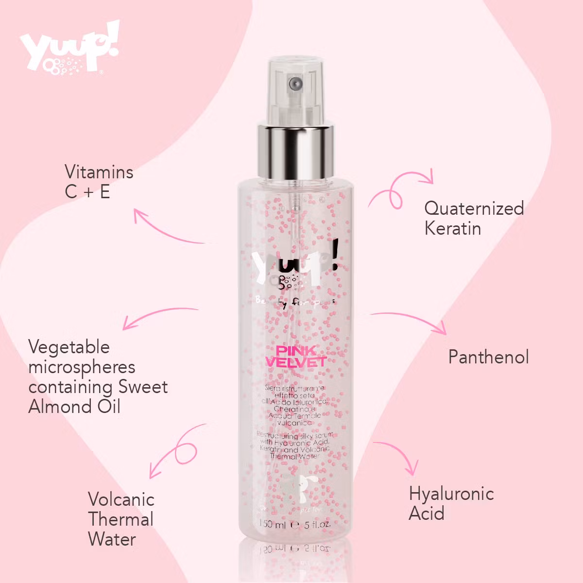 Nøkkelingredienser: Vulkanisk termisk vann, hyaluronsyre, kvaternisert keratin, beriket med vegetabilske mikrosfærer som inneholder søt mandelolje og vitamin E.