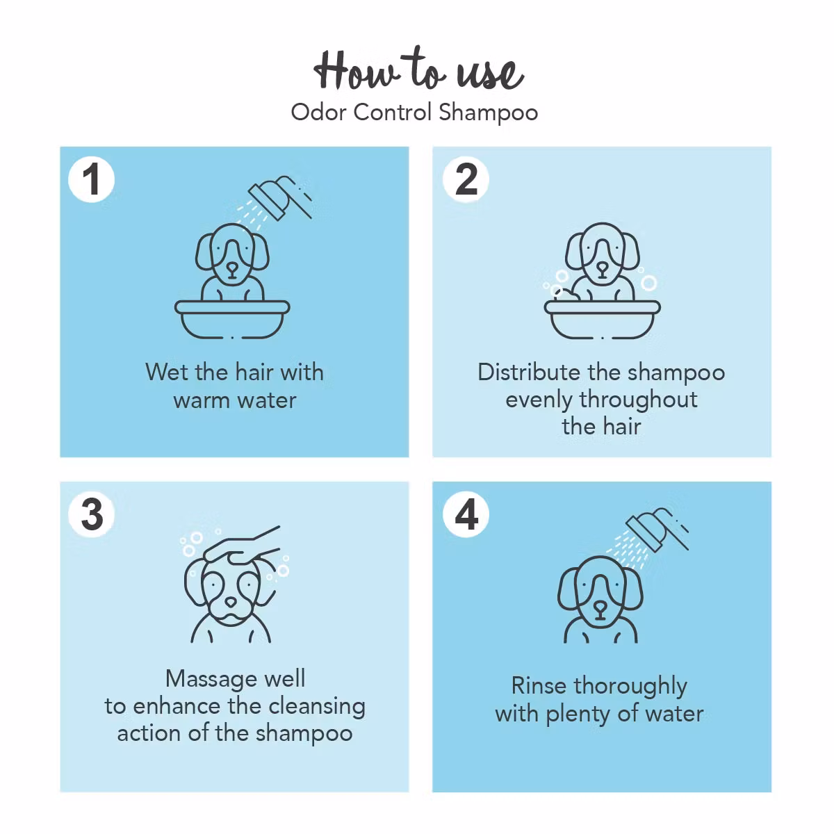 Bruk: Passende dose fordeles i våt pels, masser huden godt og fordel utover pelsen. Skyll godt med rikelig mengde vann.