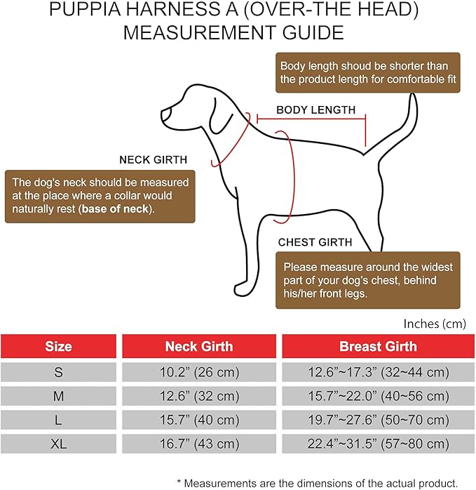 Please note that because these products were created with small breeds in mind, larger sizes (i.e. Large, Extra-Large, etc.) do not necessarily mean larger breeds. Please refer to image of the size chart. It is very important to measure your dog with a tape measure according to the size chart. As a general rule of thumb, if your dog falls in between sizes, it is usually better to go up a size. Weight figures are for estimates only. Always use actual measurements. Please note that when measuring your dog for clothing, it's very important to have an accurate measurement of your dog's neck and chest girth. IMPORTANT: Please note that when measuring your dog, the measurement for the neck must be taken at the BASE OF THE NECK and chest girth must be taken behind the front legs. Also it is important to take into account the size of the dog's head as well as neck girth and chest girth. Since some dogs have a much larger head than their neck, please be sure that the neck opening is large enough to slide over your dog's head.