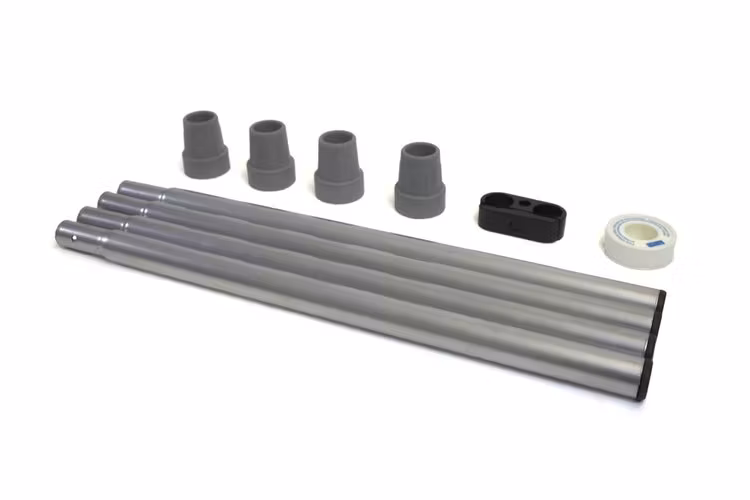 Ett Ben Forlenger sett inneholder: 4 Ben forlengere, 1 sett med Duty Feet Grå, 1 Ptfe Tape and 1 Saddle Clip.