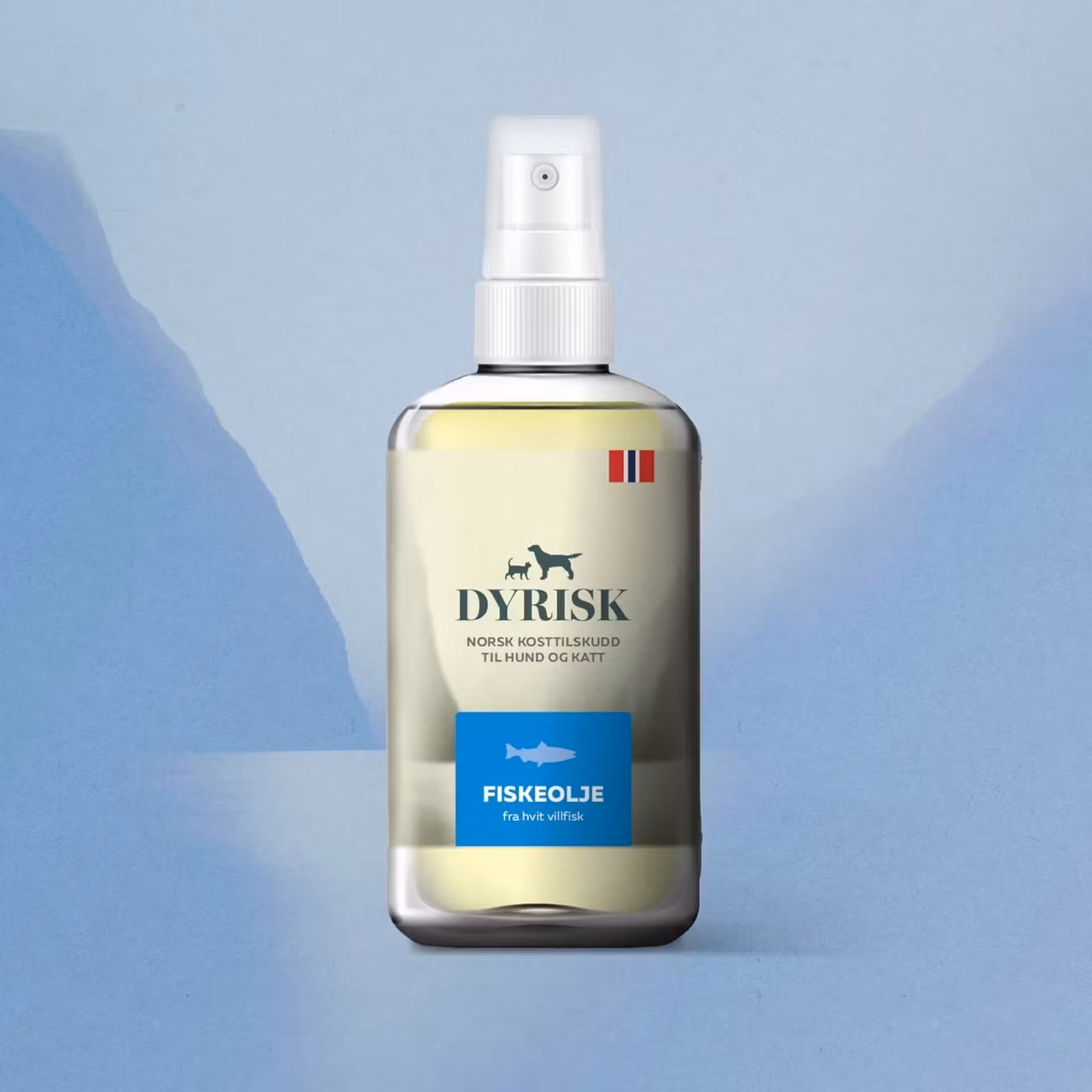 Dyrisk fiskeolje er et helt nytt kosttilskudd til hund og katt. Fiskeoljen består av olje fra villfisk fanget i Norskehavet. Dette er et kortreist kosttilskudd som er rikt på omega-3 fettsyrene EPA og DHA.